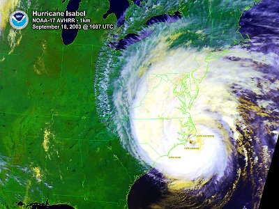 Isabel made landfall near Drum Inlet, North Carolina near 1700 UTC 18