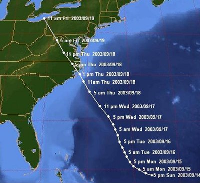Pennsylvania on 19 September. Extratropical Isabel moved northward into
